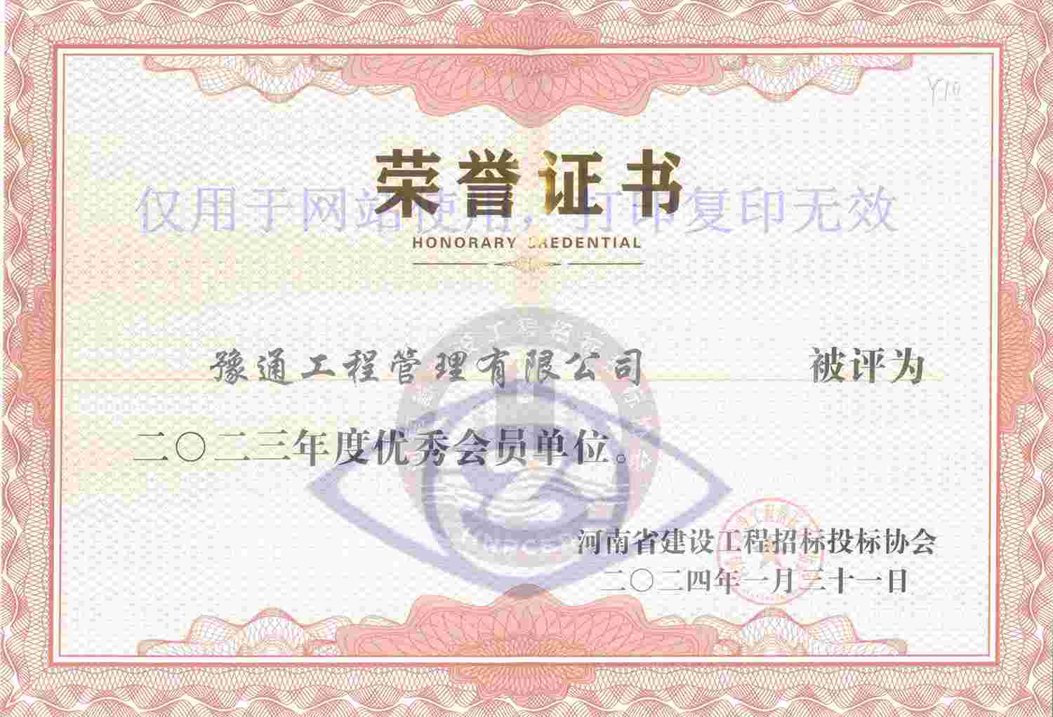 祝贺我公司荣获“河南省建设工程招标投标协会2023年度优秀会员单位”称号2024/03/13 09:11